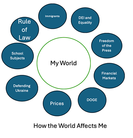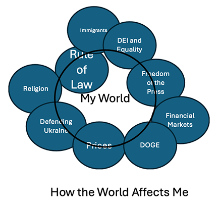 The world we live in is different for each of us, and the events of the day affect how we react. Today, we have many, often polarizing issues. One of which is, does the rule of law stop us from deporting people thought to be criminals, or are they entitled to Due Process? Another is, with prices as they are, how can I care for my family, and can I support tariffs that will cause prices to increase and make it harder for me to care for my own?